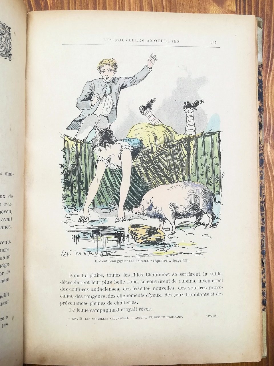Edizione francese / Edition française. Senza data o indicazioni editoriali, circa fine 800 - Volume rilegato in mezza pergamena di 392 pagine che raccoglie i seguenti racconti di Aubert: La puce - Au bord de l'Yvette - Une fete - Une fille d'Eve - Dreli Dreling - Le clou - Les Orties - Une mission delicate - Le trigonocephale - La greve des maris - Le case de Mlle Suzanne - Le sabbat - Les scelles - Le premier voyage - Le chien volant - L'ami Ulysse - L'innocent - La jarretière, Grésillon et Gringuenaude. Illustrazioni a colori di Ch. Morose. Esemplare in buone condizioni.