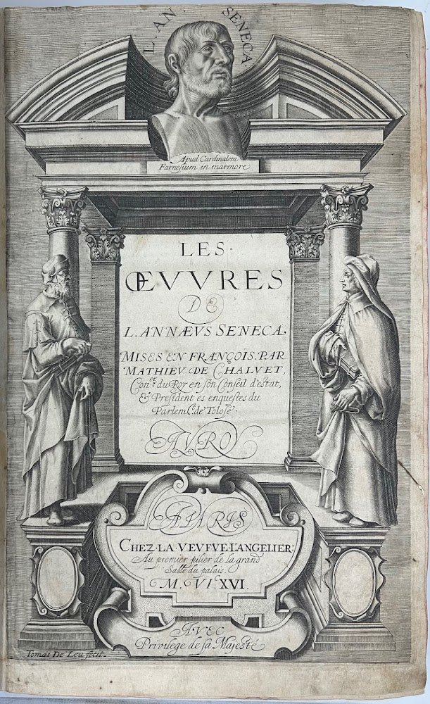 Les Oeuvres de L. Annaeus Seneca mises en François par Matthieu de Chalvet. (legato con:) Les Controverses et suasoires de M. Annaeus Seneca Rhetur de la traduction de M. Mathieuv de Chalvet...