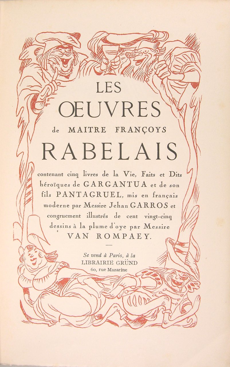 Les Oeuvres de Maitre Françoys Rabelais contenant cinq livres de la vie, faits et dits héroïques de Gargantua et de son fils Pantagruel, mis en français moderne par messire Jehan Garros.