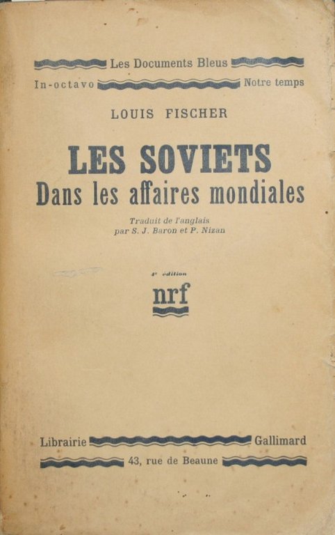 Dans les affaires mondiales - Traduit de l'anglais par S.J. Baron et P. Nizan. Quatrième édition - Collana Les Documents Bleus. N. 9 - in 8° - pp.763 - Brossura editoriale - Macchia al piatto inferiore, strappetto senza mancanze al dorso, firma a penna al frontespizio