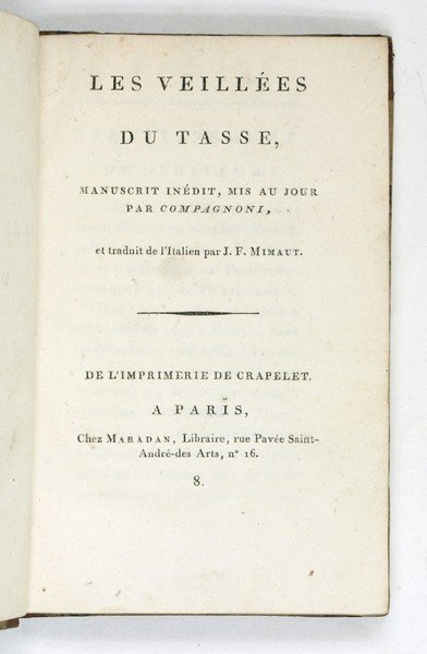 Les veillées du Tasse. Manuscrit inédit, mis au jour par Compagnoni, et traduit de l'Italien par J[ean]-F[rançois] Mimaut.