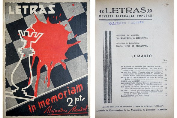 Letras, Revista literaria popular. Año IV. 1 de Marzo de 1940. Gabriel Fuster y Forteza: "Erase una vez". Fantasía sobre las "rondayes" mallorquinas, en cuatro estampas; Alejandro Mendel, "In memorian".