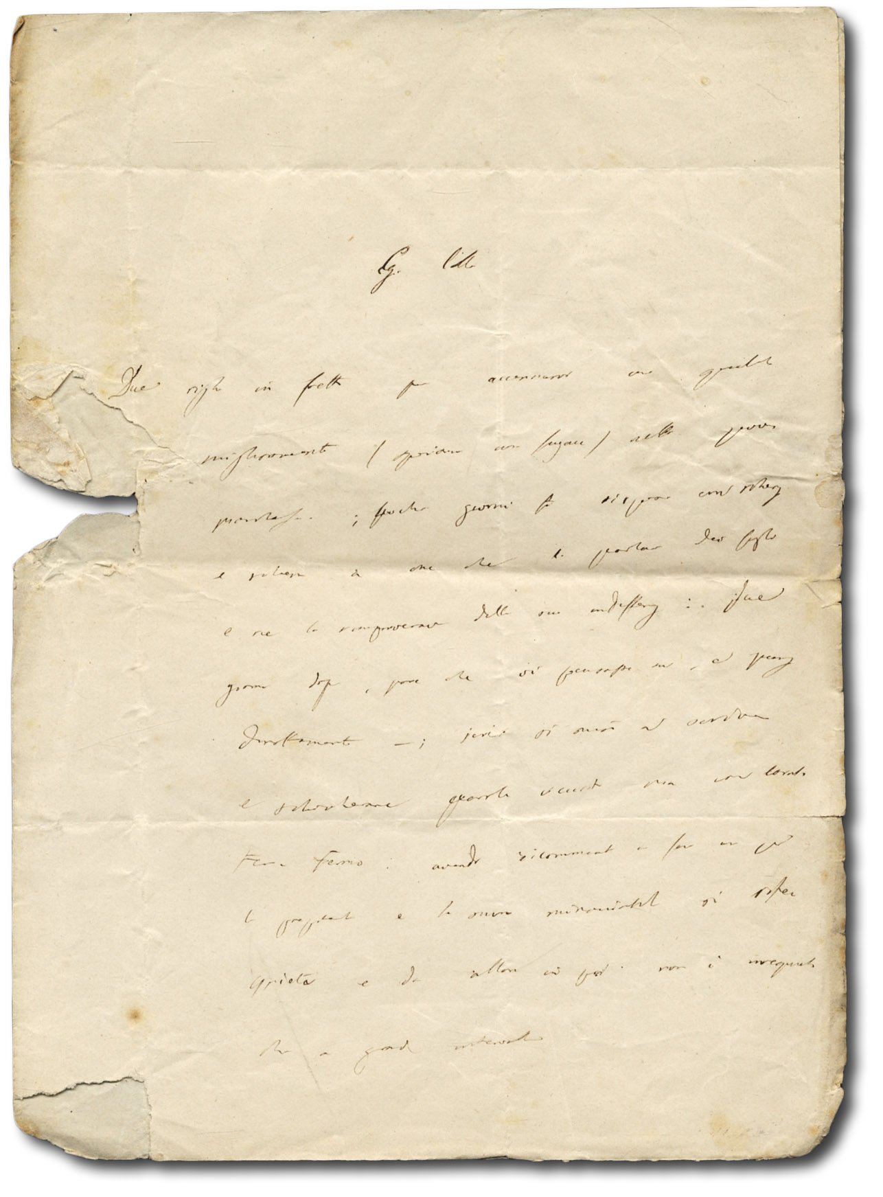 >2 pagine in-8, al verso del quaderno invio autografo con francobollo e annullo, fittamente vergate e firmate ''C. Lombroso''. Nella missiva Lombroso aggiorna il Biffi sul decorso di un'epidemia e rinnova i suoi ringraziamenti per l'appoggio che il medico gli stava offrendo. ''Due righe in fretta per annunciarvi un qualche miglioramento (speriamo non fugace)... pochi giorni di riposo... Ho letto il sunto delle vostra relazioni e vi devo rinnovare i ringraziamenti... ma l'epidemia continua il suo corso crudele...''. Il Biffi, noto soprattutto per aver rinnovato i metodi dell'assistenza psichiatrica in Italia nella seconda metà del sec. XIX, fu anche presidente e relatore di una commissione nominata dall'Istituto lombardo di scienze e lettere, incaricata di riesaminare gli studi di C. Lombroso sulla pellagra e le malattie da mais. A tal proposito pubblicò sull'argomento il lavoro "Sull'azione dell'olio di mais guasto", ibid., VIII (1875) e IX (1876). Difetti e perdita parziale di testo nel margine interno per ca. 3 cm.