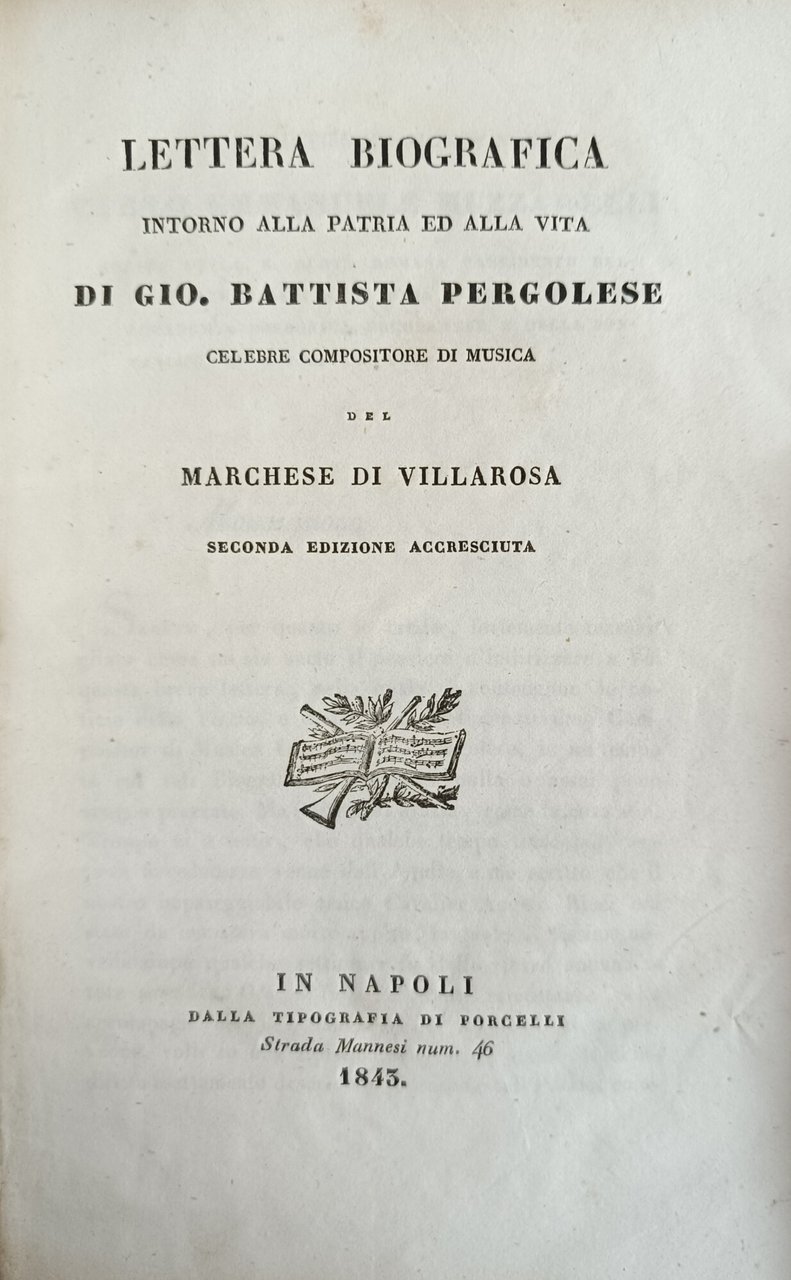 LETTERA BIOGRAFICA INTORNO ALLA PATRIA ED ALLA VITA DI GIO. BATTISTA PERGOLESE CELEBRE COMPOSITORE DI MUSICA