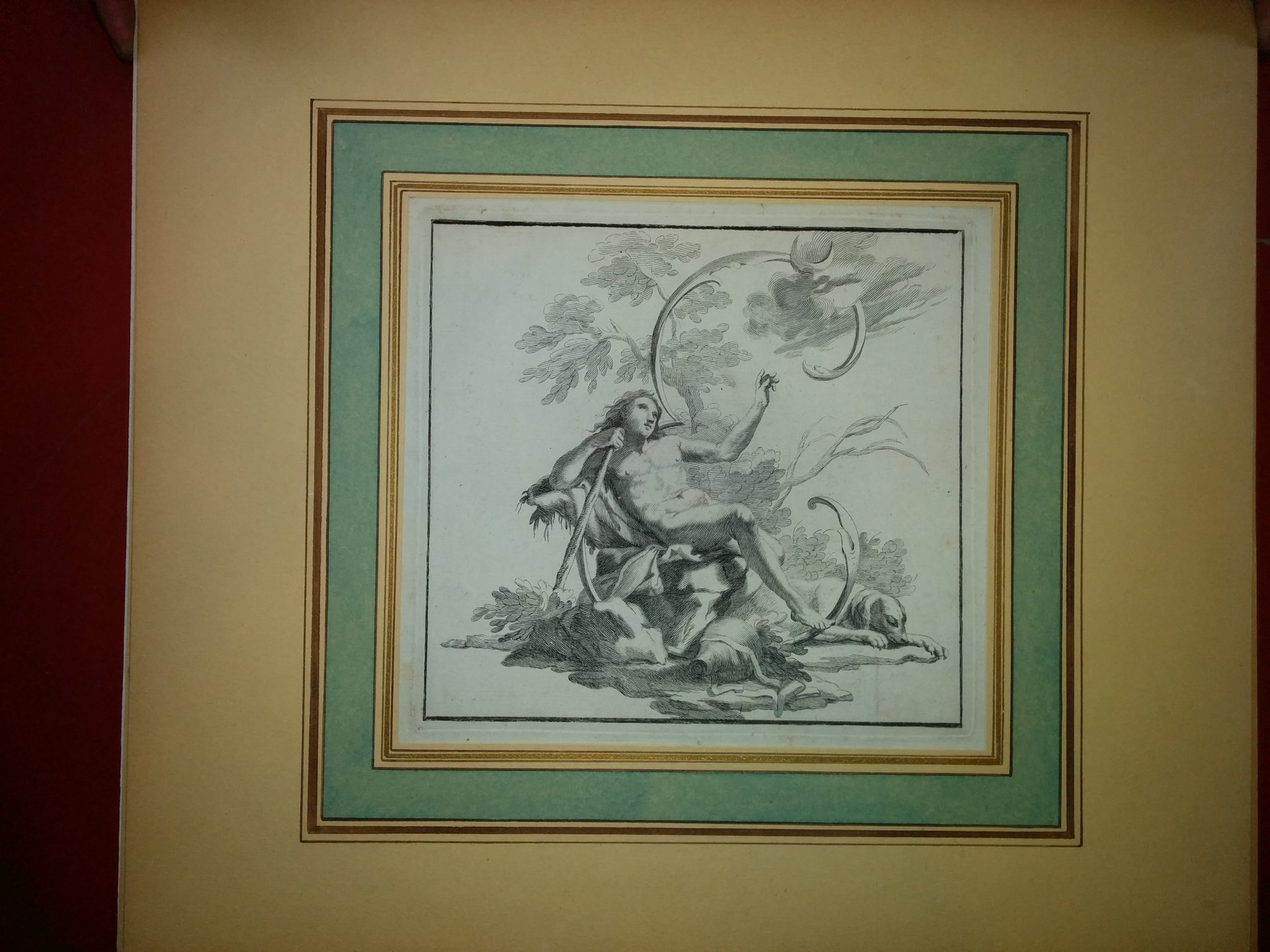 >incisione originale all'acquaforte, non firmata e non datata. Bella iniziale con decori classici/mitologici.