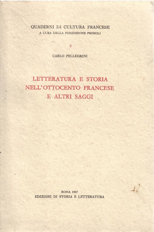 LETTERATURA E STORIA NELL' OTTOCENTO FRANCESE E ALTRI SAGGI