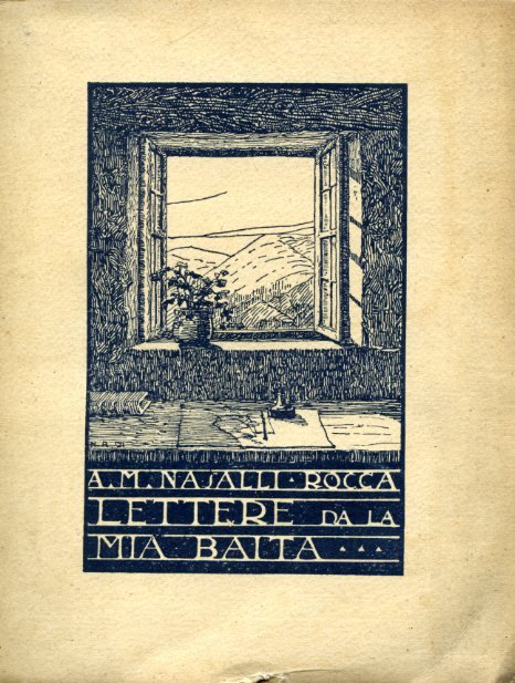 In-8°, pp. 188, (4), brossura editoriale con illustrazione xilografica di Reviglio raffigurante l'interno di una baita, dalla cui finestra si intravede uno scorcio alpino. Numerose xilografie n.t. e f.t. dello stesso Reviglio. Ottimo esemplare a fogli chiusi Edizione originale, secondo migliaio, di questa bella raccolta di bozzetti, impressioni e leggende ispirate ai paesaggi delle Alpi. Il Nasalli Rocca (1897-1968) fu giornalista e scrittore piacentino di orientamento cattolico.