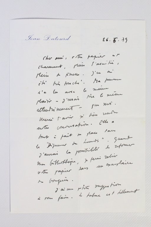 Lettre autographe signée de Jean Dutourd à Jean Rimeize
