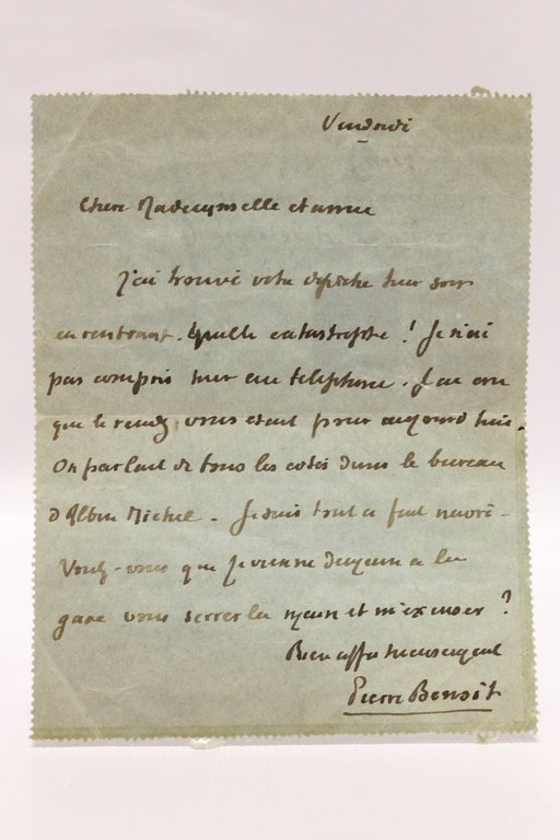 Lettre autographe signée de Pierre Benoit à Nadia Charlane