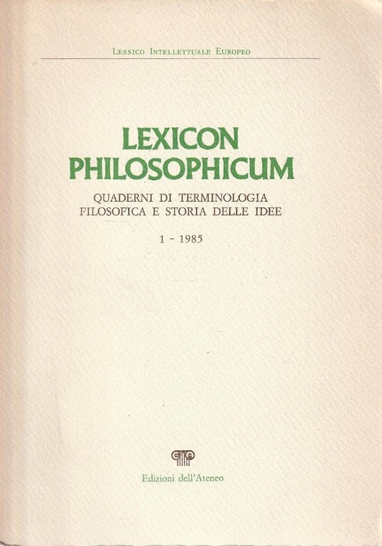 Lexicon philosophicum. Quaderni di terminologia filosofica e storia delle idee. 1 - 1985