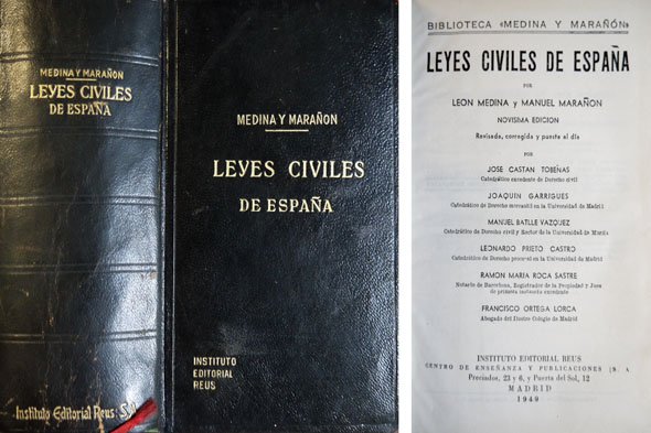 Leyes Civiles de España. (Código Penal, 1944; Ley de Enjuiciamiento Criminal; Ley de Orden Público; Ley provisional sobre organización del Poder judicial; Código de Justicia Militar de 17 Julio 1945; Ley Penal de la Marina Mercante; Código Penal de la Zona de influencia española en Marruecos). Novísima edición revisada, corregida y puesta al día por José Castán Tobeñas, Joaquín Garrigues, Manuel Batlle Vázquez, Leonardo Prieto Castro, Ramón María Roca Sastre y Francisco Ortega Lorca.