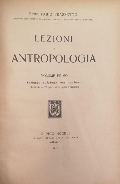 LEZIONI DI ANTROPOLOGIA. - Seconda edizione con aggiunte.