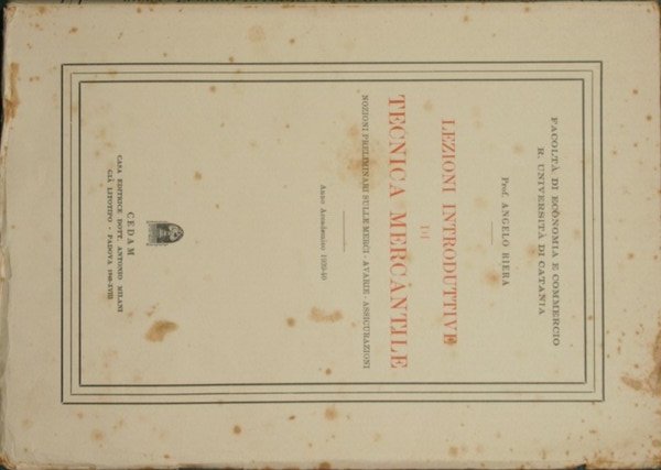 Lezioni introduttive di tecnica mercantile | Rare and modern books | Riera Angelo