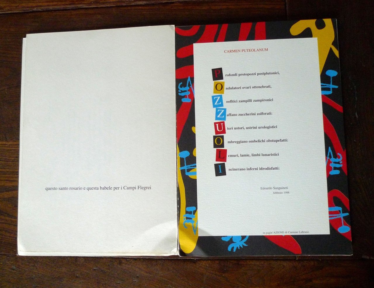 LIBRO D'ARTISTA-POZZOLANA[poesia visiva,Carmine Lubrano,Sanguineti,Diacono