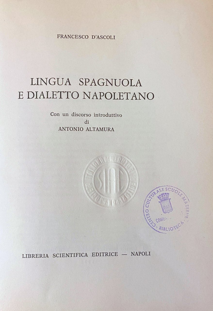 LINGUA SPAGNUOLA E DIALETTO NAPOLETANO. CON UN DISCORSO INTRODUTTIVO DI ANTONIO ALTAMURA