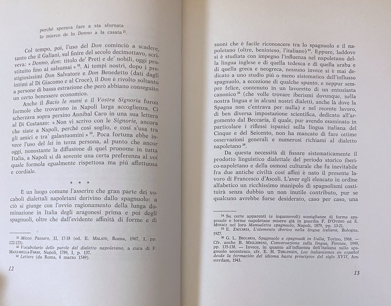 Soggetti: Dialetto napoletano Lingua napoletana Linguistica Storia Etimologia Benedetto Croce Studi culturali Bibliografia Riferimento Consultazione Collezionismo Saggi Libri rari fuori catalogo Barone Spagna Vita italiana durante la Rinascenza Cedole di tesoreria aragonese Archivi Glossario Rimatori napoletani Quattrocento Napoli Rime Chariteo Percopo Galeota Flamini Cianfalone Sonetti Conte di Policastro Perito Lettere de Jennaro Corti Novellino Masuccio Salernitano Petrocchi Esopo Francesco del Tuppo Carli De Frede Ricordi di Loise de Rosa scritti italo-spagnuoli Aneddoti Letteratura Epistole Galateo Iberismi Conquista spagnola Dialetti Dialettologia Cultura Regno Due Sicilie Influenza Italia Pietro Napoli-Signorelli Raffaele D'Ambra Andreoli Testi Vocabolari Dizionari etimologici Studi linguistici Critica Teatri Teatro Parlata Significato Parole Vocabolario napoletano-toscano Elemento iberico DAUZAT Dictionnaire étymologique PRATI Bruno Migliorini Aldo Duro Prontuario etimologico italiano Carlo Battisti Giovanni Alessio Onomastica Aniello Gentile Soprannomi Contributo Meridionale Giacomo Devoto Termini geomorfici Latino Romanzo Dialettale Gian Luigi Beccaria Spagnolo Spagnoli Riflessi ispanici Cinquecento Seicento Dizionarietto Lessico italiano-napoletano Salvatore Battaglia Corominas Diccionario Critico Castellano Castigliano Francese Alcanzar Alevamente Ammuinà Antico Antonio de Nebrija Documenti Baratta Berceo Bergantin Buffa Calabria Camorra Catalano Spagnolismo Chorizo Ciantro Cortese Documentazione Arabo Diminutivo Empanada Escamocho Farda Fonetica Forma Francia Guapo Jalapa Arabi Volgare Micco Passaro Mohino Muharram Origine Osmar Parola Pasmo Perrero Pésame Pipiare Portoghese Posentare Provenzale Sciarra Secolo XVI Semantica Sicilia Sostantivi Spanto Tabarro Timballo Tonada Varianti Verbi Villancico Voci Zaccaria Gastronomia Cibo Rimario Folklore 'A malafémmena Malacrianza Aggettivi Glottologia Berberi Calabrese Diminutivi Greco Espressione Medioevale Longobardo Mascatura Onomatopeica Verbo Sciocco Tamarro TRICCABBALLACCO Vittorio Bertoldi vuol dire Lessicologia Abbaglio Abbuffà Accidere Accuncià Allocco Ammuina Bagattella Cchiù Endecasillabi Forme Futuro semplice Mbruglia Mettere Ntallià Ntrucchià Penzà Scassà Scetà Scrianzato Scuccià Scuónceco Sfrattà Sillabe Spantecà Vattuto Vocali Zumpà Uómmene Grammatica Cilento Fonologia Pronomi Rohlfs Rotacismo Annibal Caro Abate Galiani Terlingen Giambattista Basile Omertà Ufo Neapolitan dialect Language Linguistics History Etymology Cultural studies Bibliography Reference Consultation Collecting Essays Rare books out of print Spain Italian life Renaissance Treasury Archives Glossary Rhymers Fifteenth century Naples Rhymes Sonnets Letters Italo-Spanish writings Anecdotes Literature Epistles Etiquette Iberisms Conquest Dialects Dialectology Culture Kingdom of the Two Sicilies Influence Italy Texts Vocabularies Etymological dictionaries Linguistic Criticism Theaters Theater Spoken Words Meaning Tuscan vocabulary Iberian element Handbook Nicknames Southern Geomorphic terms Latin Romance Dialectal Spaniards Hispanic reflexes Sixteenth Seventeenth Dictionary Lexicon Castellan Castilian Old French Documents Catalan Spanishism Documentation Arabic Diminutive Phonetics Form France Arabs Vulgar Origin Portuguese Provençal Semantics Sicily Herbal nouns Entries Gastronomy Food Rhyming Adjectives Glottology Berber Calabrian Diminutives Greek Expression Medieval Lombard Onomatopoeic Lexicology Hendecasyllables Forms Simple Future Grammar Phonology Pronouns Rhotacism