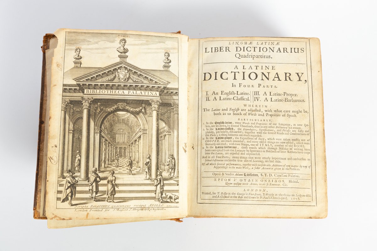 4°, mm 240x190, pagine non numerate, antiporta incisa raffigurante la biblioteca Palatina, 2 carte geografiche: Roma e l'Italia antica; seconda parte con autonomo frontespizio datato 1677. Legatura in piena pelle coeva con titolo su tassello al dorso; restauri agli angoli interni dei piatti, abrasioni evidenti, nel complesso accettabile conservazione: interno genuino. Seconda edizione assai aumentata e prima con le tavole e tabelle cronologiche degli eventi dall'antichità al XVII secolo. L'autore fu insegnante alla Westminster dove divenne Vicario nel 1658, poi rettore del Chelsea College. La sua opera ebbe successo e fu più volte ristampata. Ex libris Ivan Verdiau al contro-piatto. Firma di possesso datata 1695 nella seconda parte: James Harvest.. *** TUTTI I NOSTRI LIBRI SONO VISIBILI PREVIO CONTATTO MAIL O TELEFONO NELLA NUOVA SEDE DI MILANO: LIBRERIA COSMOPOLIS, VIA JOMMELLI, 22. ***