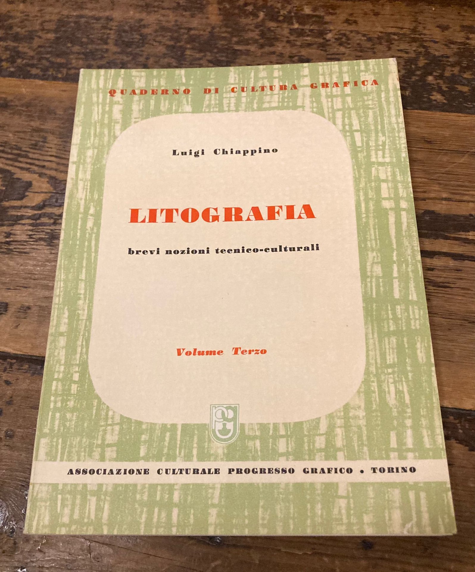 In-8° (21x15 cm), pp. 207 (1) bianche, brossura editoriale con al piatto anteriore titoli in rosso e nero in finestra bianca su grafica reticolare verde. Figure b/n nel testo, tavole a colori f/t. Quaderni di cultura grafica. Ottimo esemplare. Edizione originale di questa trattazione precisa e puntuale degli aspetti specifici della stampa litografica off-set: origini e struttura, mettifogòi automatic, rulli, bagnatira, caucciù, etc. Il primo volume era dedicato alla litografia nei suoi aspetti più generali; il secondo all' incisione litografica, trasporto su pietra, su zinco, cromolitografia, fotolitografia, etc .