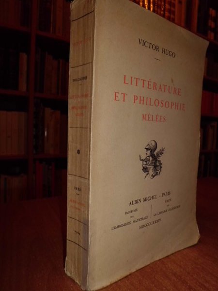 Victor, Hugo. Paris, Albin Michel, 1934. Littérature et Philosophie Mèlées. Grosso volume in - 8° grande, br., cop. orig. 480 pp. Contenente pensieri, critiche giornalistiche, sentenze, filosofia ecc. Uff. scat. 6