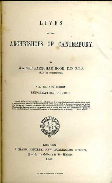 Lives of the Archbishops of Canterbury : New Series Volume III - Reformation Period (Volume VIII)