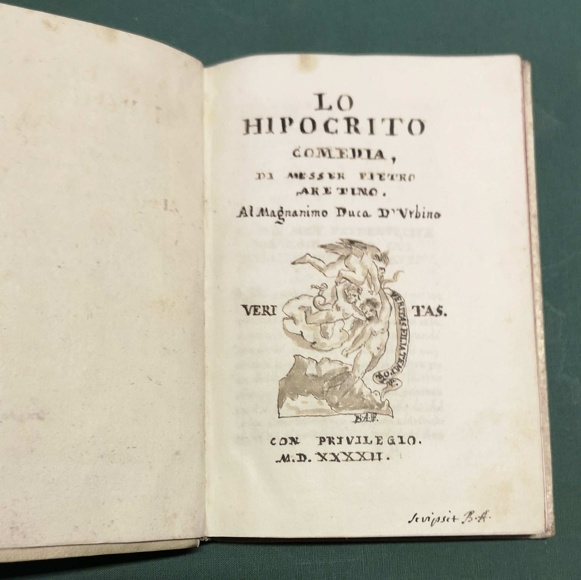 Lo Hipocrito. Comedia di Messer Pietro Aretino al Magnanino Duca d'Urbino. M.D.XXXXII (ma copia manoscritta del XVII sec.).