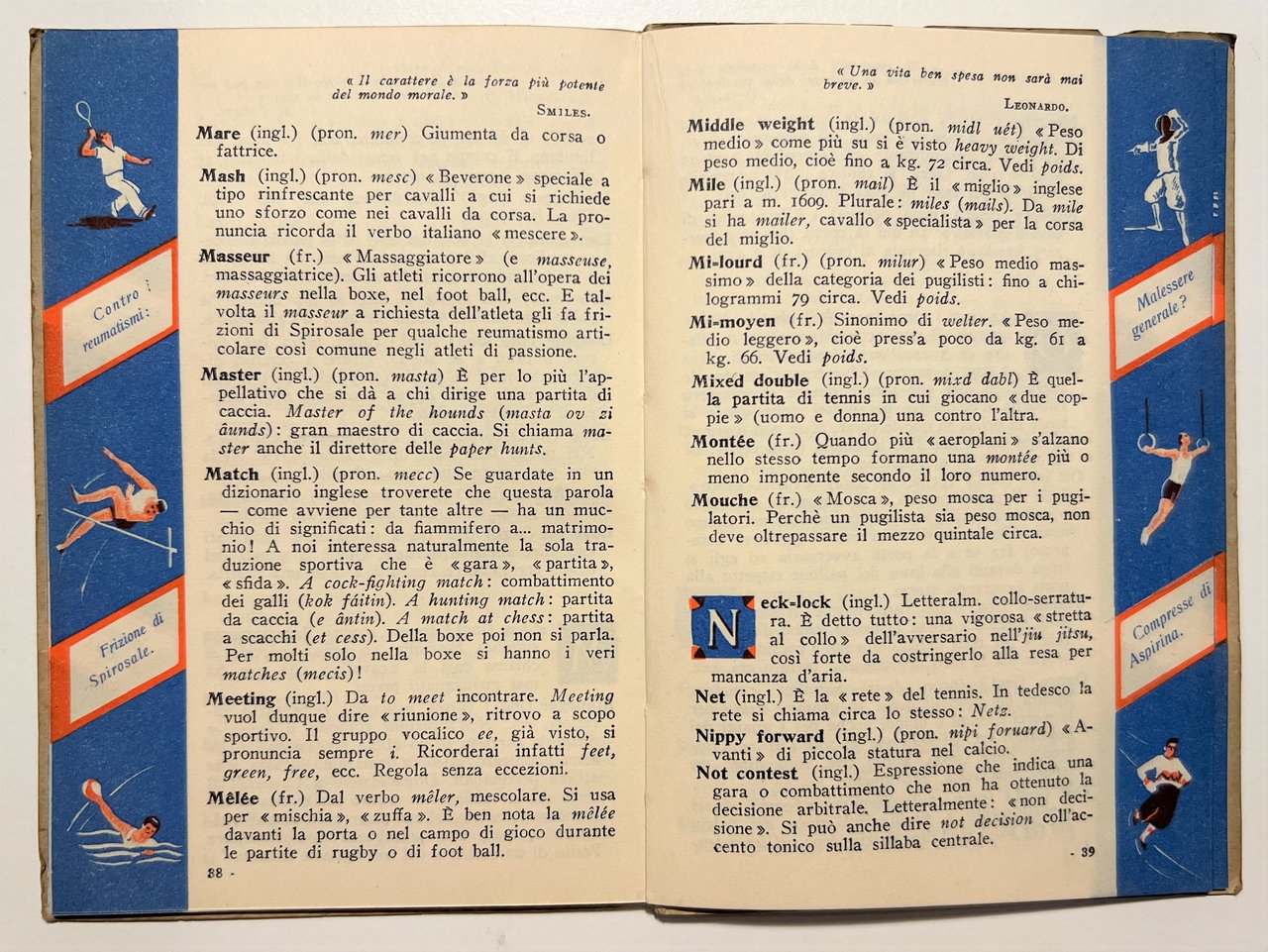 Lo Sport e la Salute: Raccolta delle voci sportive d'uso più comune - ed. 1931 Casa Bayer Testo in lingua italiana. Pagine - 63 con illustrazioni. Copertina morbida. Condizioni molto buone.