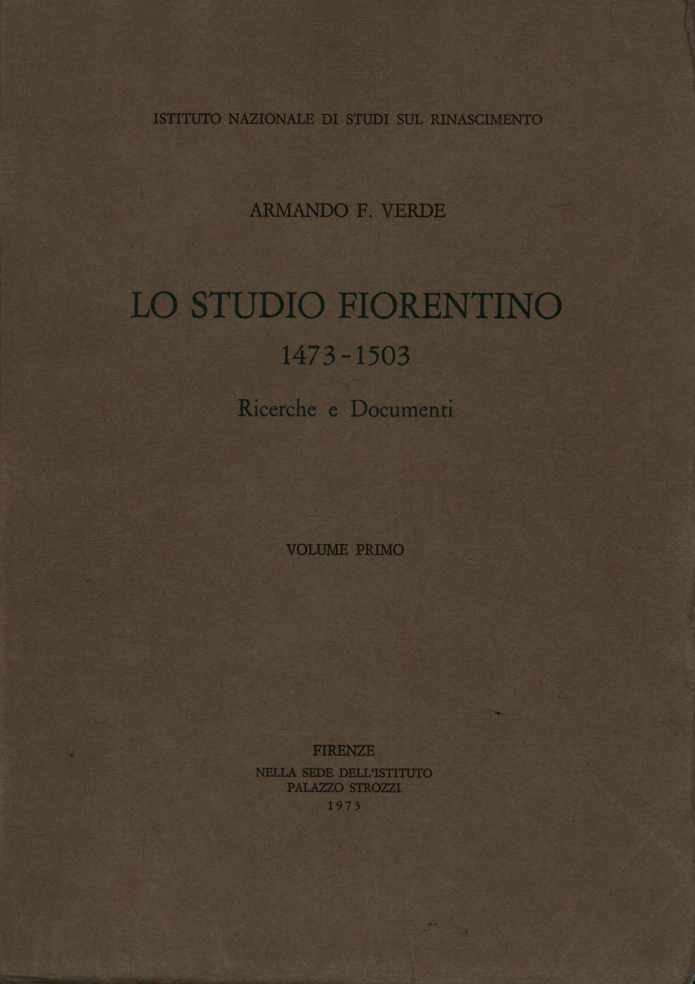 Lo studio fiorentino 1473-1503. Ricerche e documenti (Volume primo)