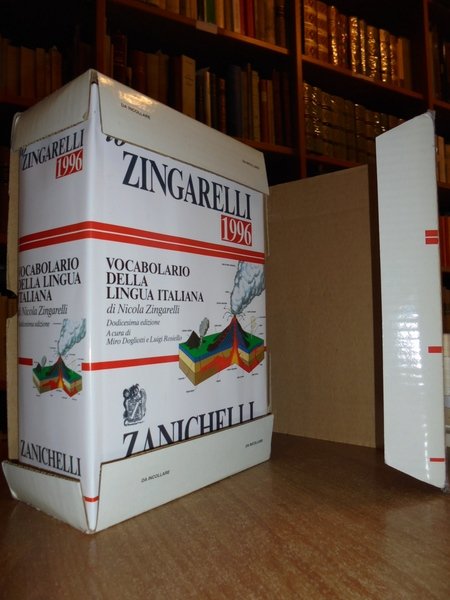 Vocabolario della lingua italiana di Nicola ZINGARELLI. Bologna, Zanichelli, 1996. Dodicesima edizione. A cura di Miro Dogliotti e Luigi Rosiello. In-8° grande, cartonato edit., con sovracopertina illustrata a colori. 2146 pp. con molte illustrazioni in nero e numerose tavole a colori ottimamente illustrate. Conservato nelle confezione originale in cartonato edit. Come nuovo. Neg. scienze dietro. mob. R