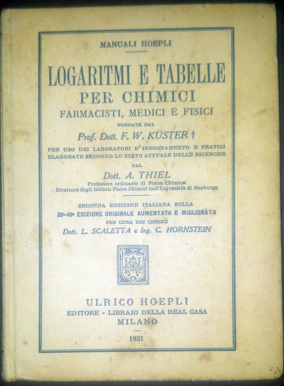 LOGARITMI E TABELLE PER CHIMICI FARMACISTI MEDICI E FISICI 1931 Hoepli manuali