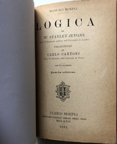 Soggetti: Manuali Hoepli, Libri Vintage, Antichi Manuali, Libri rari, Fuori catalogo, Introvabili, Manualetti, Studio, Novecento, Modernariato, Filosofia, Lezioni di logica elementare, Euclide, Significato, Leibniz, Giudizio, Realtà, Verità, Ragionamento deduttivo, Deduzione, Sofisma, Sofistica, Parole, Proposizioni, Sillogismi, Ipotesi, Ambiguità, Fallacia, Falsità, Metodo induttivo, Linguaggio, Leggi del pensiero, Affermazioni, Raziocinio, Aggettivi, Parole, Conclusioni, Economia politica, Logic and Scientific Method, Trattato sul metodo logico e scientifico, Logic Deductive and Inductive, Scientific Method, Paradosso di Jevons, British Logicians, Science Primers, Lessons, Aristotele, Aristotle, J. S. Mill, Laws of Thought, Hoepli Manuals, Vintage Books, Ancient Manuals, Rare Books, Out of Print, Study, Twentieth Century, Collectibles, Collezionismo, Modernity, Philosophy, Lessons of Elementary Logic, Meaning, Judgment, Reality, Truth, Deductive Reasoning, Deduction, Sophistic, Words, Propositions, Syllogisms, Hypotheses , Ambiguity, Fallacy, Falsehood, Inductive Method, Language, Affirmations, Reasoning, Adjectives, Conclusions, Political Economy, Treatise on the logical and scientific method