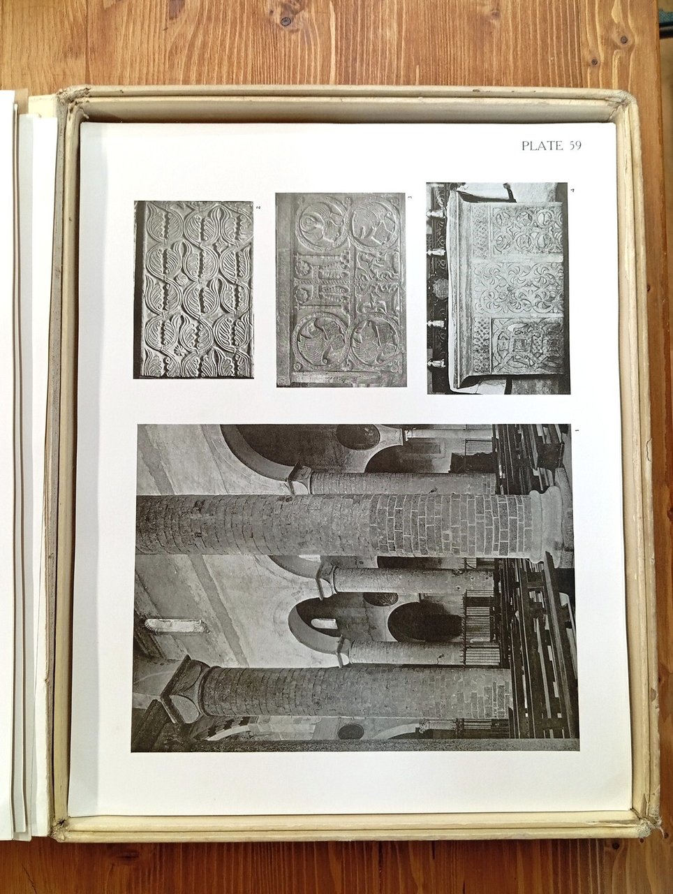 Quarto e ultimo volume dell'opera. Edizione originale di 750 copie - Custodia editoriale in tela bordò e cartone, contenente 264 fogli sciolti di cui: 20 pagine con frontespizio e indice delle illustrazioni; 244 tavole fotografiche in bianco e nero. Ordinarie usure ai margini del cartone, peraltro esemplare in buone-ottime condizioni di una pubblicazione prestigiosa e non comune -- Notevole opera in cui sono illustrati tutti i più importanti esempi di architettura lombarda. Oltre alle vedute degli edifici, sono riprodotti molti dettagli architettonici. Ogni tavola contiene di solito diverse figure, cosicché il numero effettivo di illustrazioni in b/n del volume ammonta a più di mille, di cui una buona parte è costituita da fotografie dell'autore. Storico dell'arte statunitense, Arthur Kingsley Porter (Stanford, Connecticut, 1883 - ivi 1933) fu prof. alla Yale University e, dopo la prima guerra mondiale, alla Harvard University. Grande conoscitore dell'arte europea medievale, sentì vivamente il problema costruttivo come fondamento dell'architettura medievale, ch'egli polemicamente contrappose a quella romana, nella quale la decorazione non si pone come corollario dell'organismo costruttivo. Oltre a numerosi saggi, si ricordano i fondamentali volumi: The construction of lombard and gothic voults (1911); Lombard architecture (4 voll., 1915-17); Romanesque sculpture of the pilgrimage roads (10 voll., 1923). // Remarkable work in which are shown all the important examples of Lombard architecture in Italy. Besides views of buildings, many architectural details are reproduced. Each plates usually contains several figures, so that the actual number of b/w illustrations in the volume amounts to over a thousand, a large proportion of which are from the author's own photographs. American art historian, Arthur Kingsley Porter (Stanford, Connecticut, 1883 - 1933) was a professor at Yale University and, after the First World War, at Harvard University. A great connoisseur of Medieval European art, he keenly felt the construction problem as the foundation of Medieval architecture, which he polemically contrasted with Roman architecture, in which decoration was not a corollary of the constructive organism. In addition to numerous essays, mention must be made of the fundamental volumes: The construction of Lombard and Gothic voults (1911); Lombard architecture (4 vols., 1915-17); Romanesque sculpture of the pilgrimage roads (10 vols., 1923).
