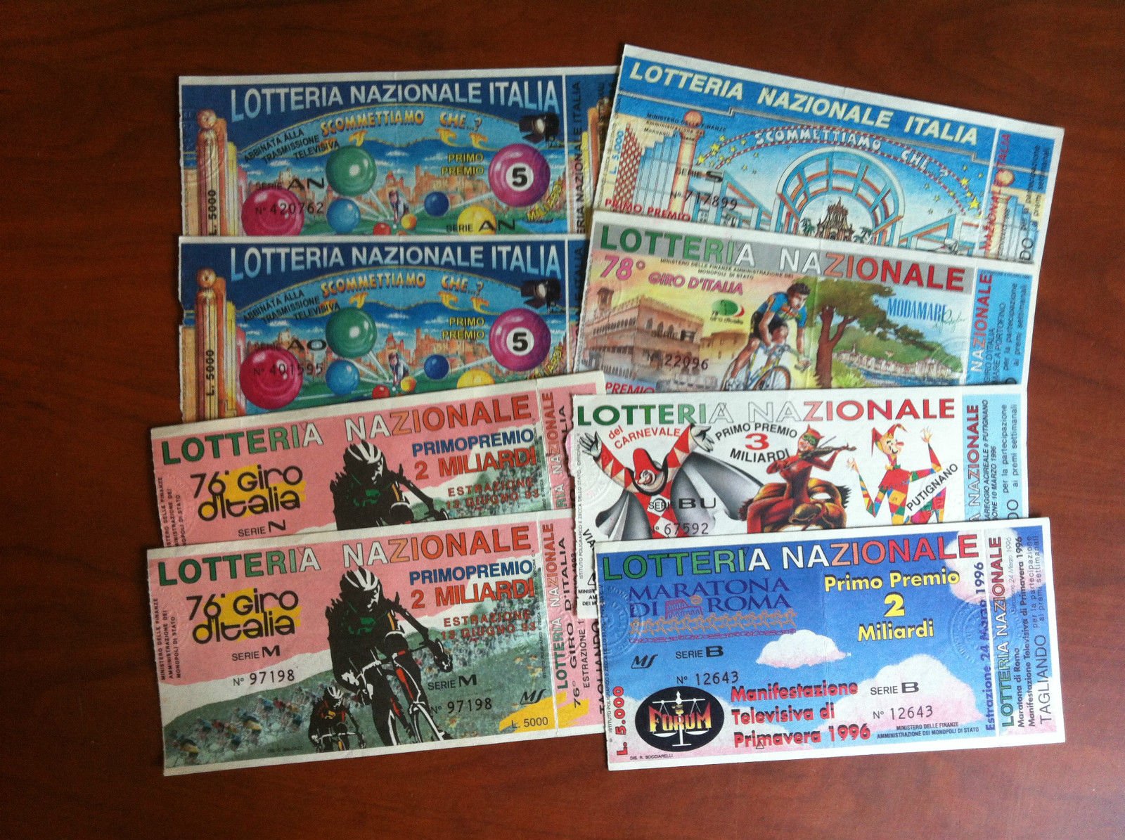 LOTTERIA NAZIONALE ITALIA 1993-95-96Lotto 8 biglietti originaliin ottimo stato (5 g)E17702