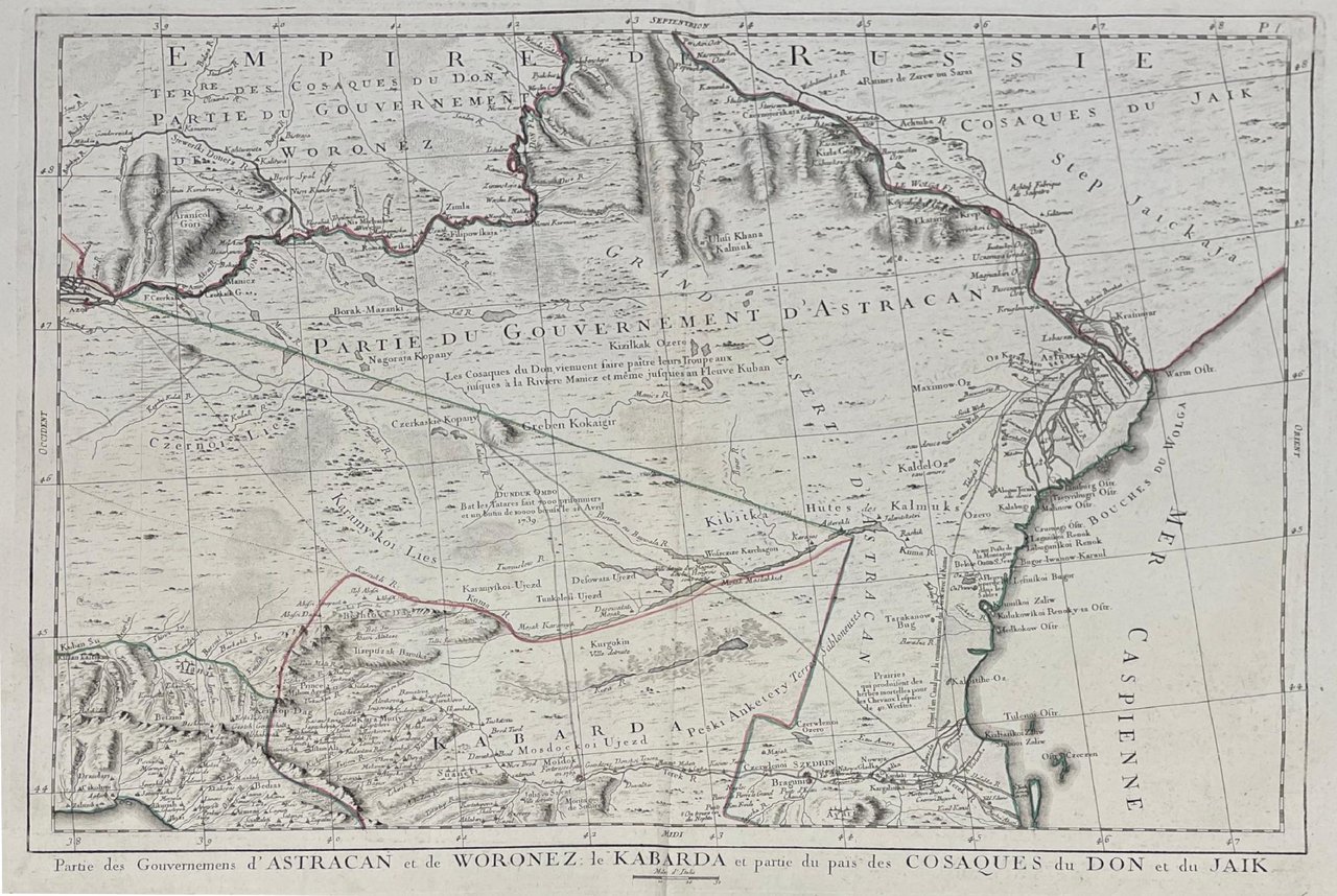 Lotto di 6 mappe: CARTE DE LA PARTIE SEPTENTRIONALE DE L'EMPIRE OTOMAN CONTENANT LA CRIMEE, LA MOLDAVIE, LA VALAKIE, LA BULGARIE, AVEC LA NOUVELLE RUSSIE, LES GOUVERNEMENT D'ASTRACAN, ET DE VORONEZ, LES TATARES, COSAQUES