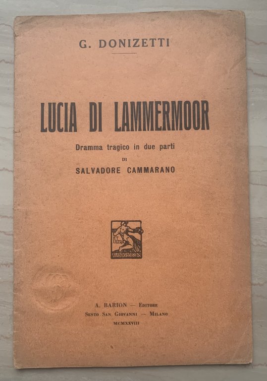 - Novecento libretti, musica, musica italiana moderna e contemporanea XIX s., opera, tragedia lirica, Gaetano Donizetti, Gaetano Domenico Maria Donizetti, editoria, Attilio Barion, letteratura letteratura italiana moderna e contemporanea XIX s., drammaturgia, drammi, drammi tragici, Salvadore Cammarano