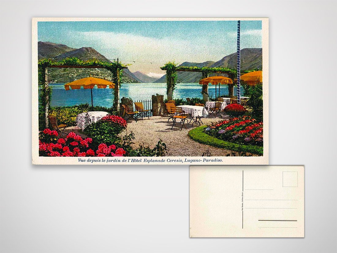 Cartolina a colori, Lugano - Paradiso, Vista dal giardino Hotel Esplanade non viaggiata Dimensioni: 14x9 cm