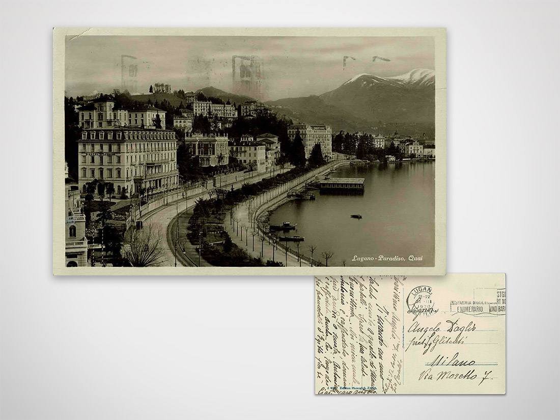 Cartolina a colori, Lugano panorama Quai viaggiata senza francobollo Dimensioni: 14x9 cm