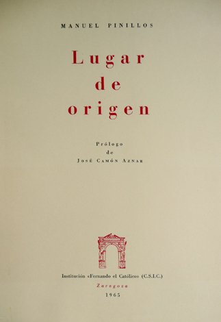 Lugar de orígen. Poemas. Prólogo de José Camón Aznar.