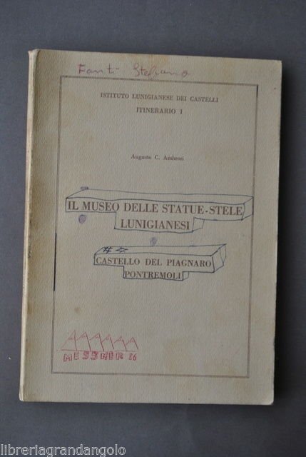 Vedere la descrizione dettagliata Augusto C. Ambrosi, Il Museo delle Statue - Stele Lunigianesi Castello del Piagnaro Pontremoli Istituto Lunigianese dei castelli-Tipografia Moderna La Spezia 1975; 24,5x17,5 cm; pp. 160 + indice. Brossura ed. Illustrazioni b.n. nel testo e tavv. più volte rip. Condizioni di conservazione Volume in buono stato di conservazione con leggere tracce d'uso e del tempo. Abrasioni e macchie alla coperta. Scritte a biro alla coperta e i 7 pp. interne, con righe al di fuori del testo. Archeologia della Lunigiana. Per altri volumi e documenti su questo e altri argomenti visitate il nostro negozio "Libreria Grandangolo" Data l'importanza delle 5 stelle rilasciate durante l'assegnazione del feedback, invitiamo tutti gli acquirenti, se soddisfatti del loro acquisto, a rilasciare tutte le 5 stelle. La mancanza anche solo di una stella illuminata è molto lesiva per noi venditori professionali. Grazie! CONDIZIONI DI VENDITA Spedizione Fino a 5 kg piego di libri raccomandato, oltre i 5 kg pacco postale. Si ricorda che l'imballo viene eseguito con la massima cura. La merce viene spedita a pagamento avvenuto e viaggia a rischio e pericolo dell'acquirente. Per maggiori informazioni vedi la pagina SPEDIZIONI del nostro negozio. Ritiro diretto Siamo disponibili per il ritiro diretto a Modena e a Milano. Per gli indirizzi delle sedi vedi la pagina DOVE SIAMO del nostro negozio. Acquisti multipli Se si acquistano più libri, la spedizione si paga una sola volta, purché si rispettino gli scaglioni di peso. Estero / Foreign For international shipment, please contact us. Metodo di pagamento Pay Pal, bonifico bancario, versamento postale (cc/p, vaglia o altro). La spedizione avverrà entro i primi 4 giorni lavorativi dopo la conferma di avvenuto pagamento. Si emette ricevuta fiscale e a richiesta fattura. Il pagamento deve essere effettuato entro 7 giorni lavorativi dalla data di acquistocanze al dorso. Tracce di sporco. Leggere gore. , trascorsi i quali l'oggetto sarà rimesso in vendita. Feedback Viene rilasciato dall'acquirente dopo il ricevimento di quanto acquistato. Data la sua importanza, vi invitiamo a leggere il breve testo della pagina FEEDBACK del nostro negozio. Pertanto, in caso di qualsiasi problema, non esitate a contattarci. Diritto di recesso L'acquirente ha il diritto di restituire l'oggetto entro 14 giorni ed essere rimborsato, escluse le spese di porto e imballo. L'oggetto deve essere restituito, dopo previa comunicazione, imballato e nelle medesime condizioni di come era all'origine. Creato da Turbo Lister Strumento gratuito per mettere in vendita i tuoi oggetti. Metti in vendita i tuoi oggetti in modo facile e veloce e gestisci le inserzioni in corso. "