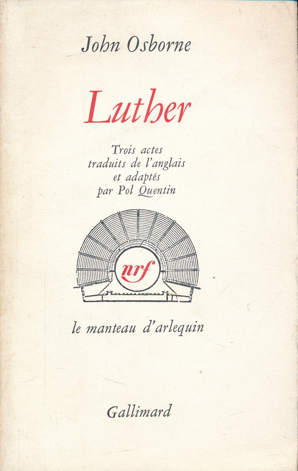 Gallimard 1965 Gallimard 1965. In-12 broché de 153 pages. Trois actes traduits de l'anglais et adaptés par Pol Quentin. Collection Le manteau d'Arlequin. Bon état.