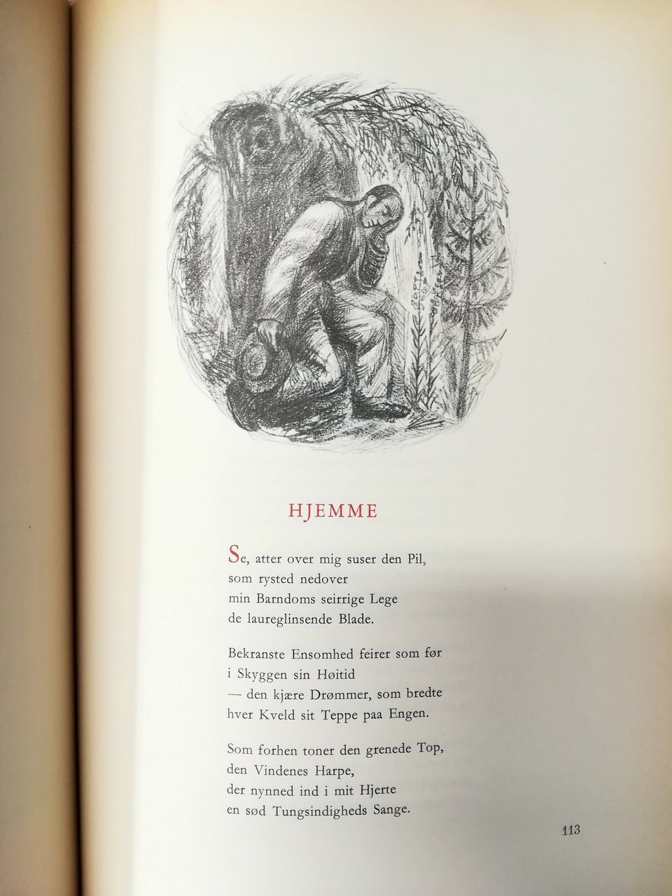 Edizione originale norvegese / Original Norwegian edition. Volume che commemora il centenario della morte del poeta nel 1845 - Brossura editoriale con bandelle, 217 pagine con splendide tavole e disegni di Ørnulf Ranheimsæter in apertura a ciascun capitolo, introdotto da un saggio di Daniel Haakonsen. Modesti segni d'uso a margine della brossura, interno ottimo e con pagine perlopiù ancora intonse (a fogli chiusi).