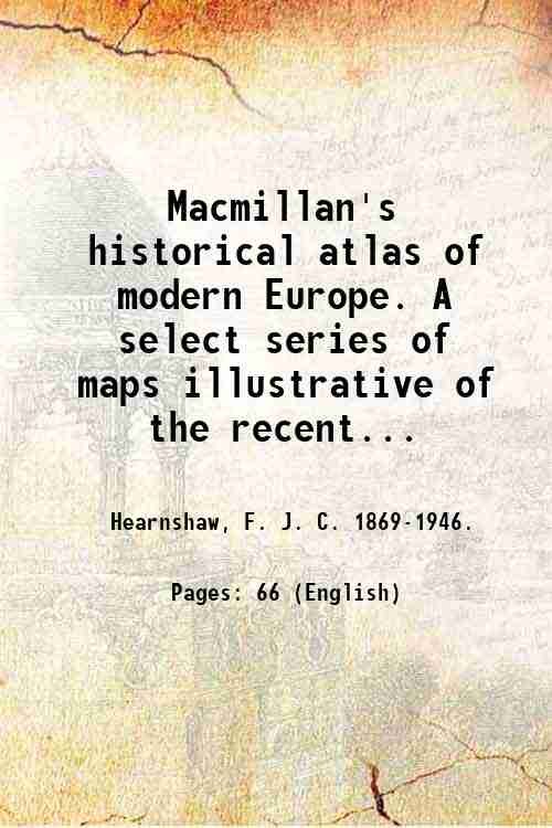 Macmillan's historical atlas of modern Europe. A select series of maps illustrative of the recent history of the chief European states and their dependencies. Ed. by F. J. C. Hearnshaw . 1920
