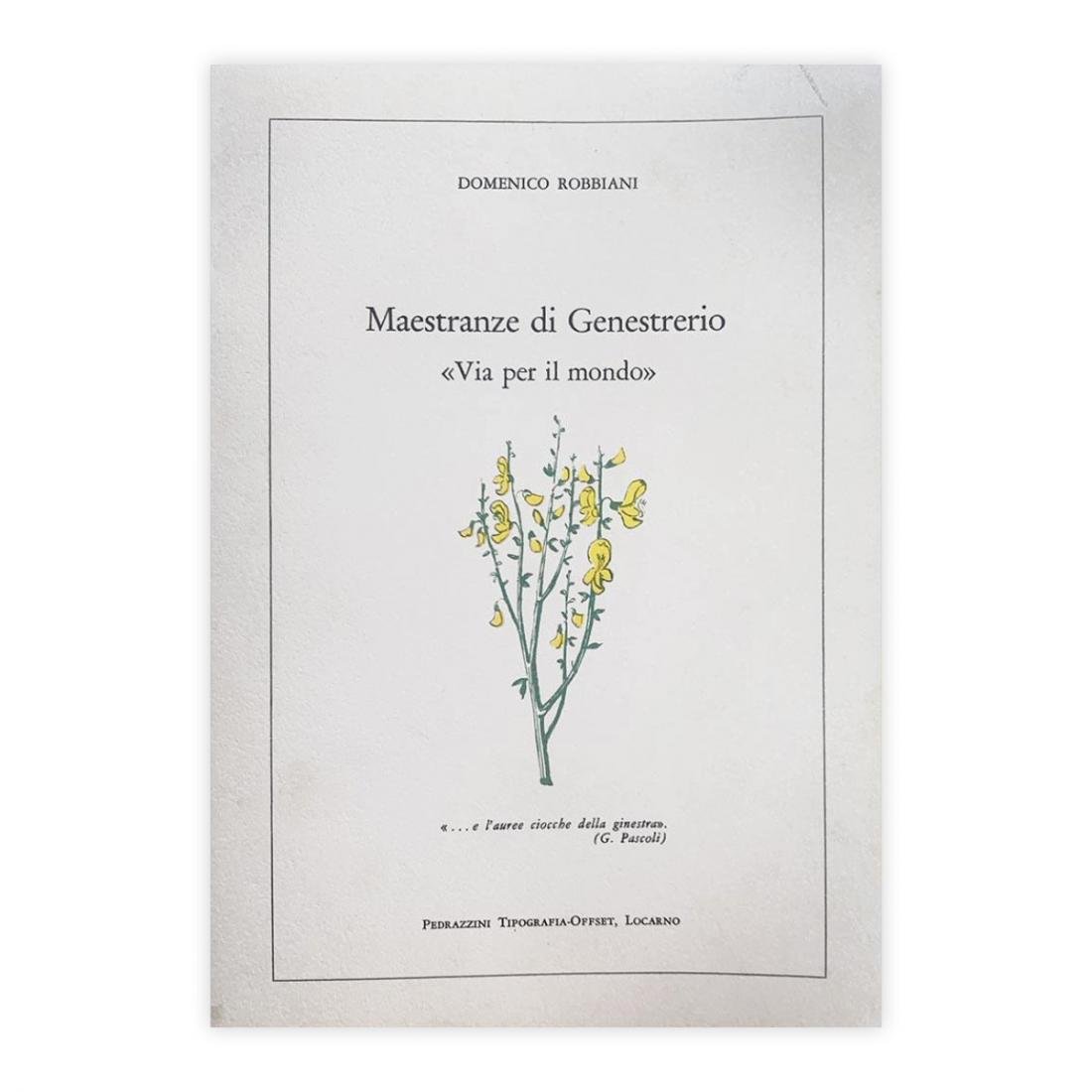 Autore: Domenico Robbiani Titolo: Maestranze di Genestrerio Sottotitolo: "Via per il mondo" Edizione: Pedrazzini Locarno 1967 Dimensioni: 21x15 cm Pagine: 75 Copertina: Brossura Condizioni: Ottime Peso: 0,150 kg