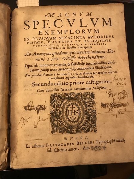 Magnum speculum exemplorum ex plusquam sexaginta autoribus pietate, doctrina, et antiquitate venerandis, varijsque historijs, tractatibus, & libellis excerptum, ab anonymo quodam, qui circiter annum Domini 1480. vixisse deprehenditur. Opus ab innumeris mendis, & fastidiosis breviationibus vindicatum, varijs notis Autorumque citationibus illustratum, Secunda editio priore castigatior. Cum indicibus locorum communium utilissimis.