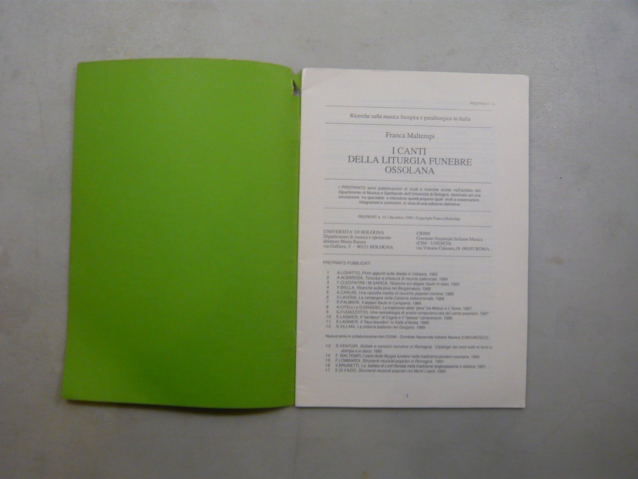 Maltempi,I CANTI DELLA LITURGIA FUNEBRE OSSOLANA,DAMS 1990 | Rare and modern books |