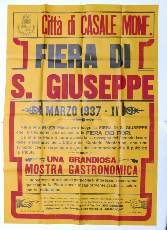Manifesto Città di Casale Monferrato - Fiera di S. Giuseppe - Marzo 1937