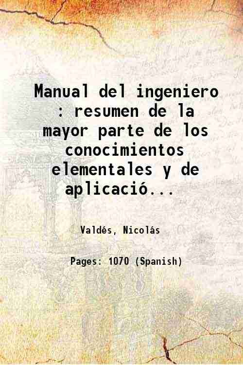 Manual del ingeniero : resumen de la mayor parte de los conocimientos elementales y de aplicaciÛn en las profesiones del ingeniero y arquitecto : comprendiendo multitud de tablas, fÛrmulas y datos pr·cticos para toda clase de construcciones . 1859