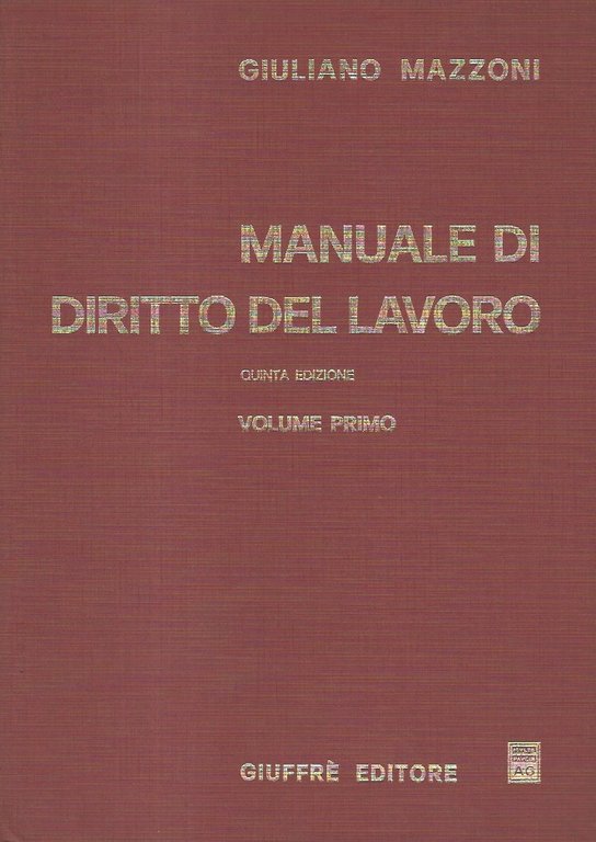 Manuale di diritto del lavoro. Quinta edizione riveduta ampliata. Volume primo: Principi generali e fonti, Il rapporto di lavoro - Volume secondo: Il rapporto di assicurazione sociale, L'organizzazione e l'azione sindacale, L'atività amministrativa dello stato, I procedimenti giurisdizionali del lavoro.