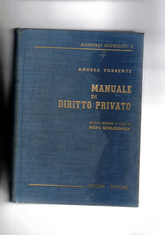 Manuale di diritto privato. Ottava ediz. ampliata. da Piero Schlesinger.