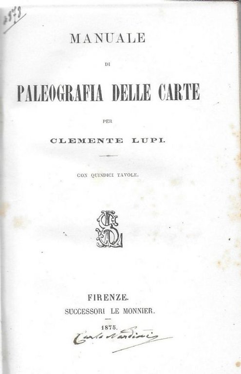 Manuale di Paleografia delle carte. Con 15 tavole.