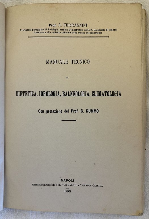 MANUALE TECNICO DI DIETETICA IDROLOGIA BALNEOLOGIA CLIMATOLOGIA
